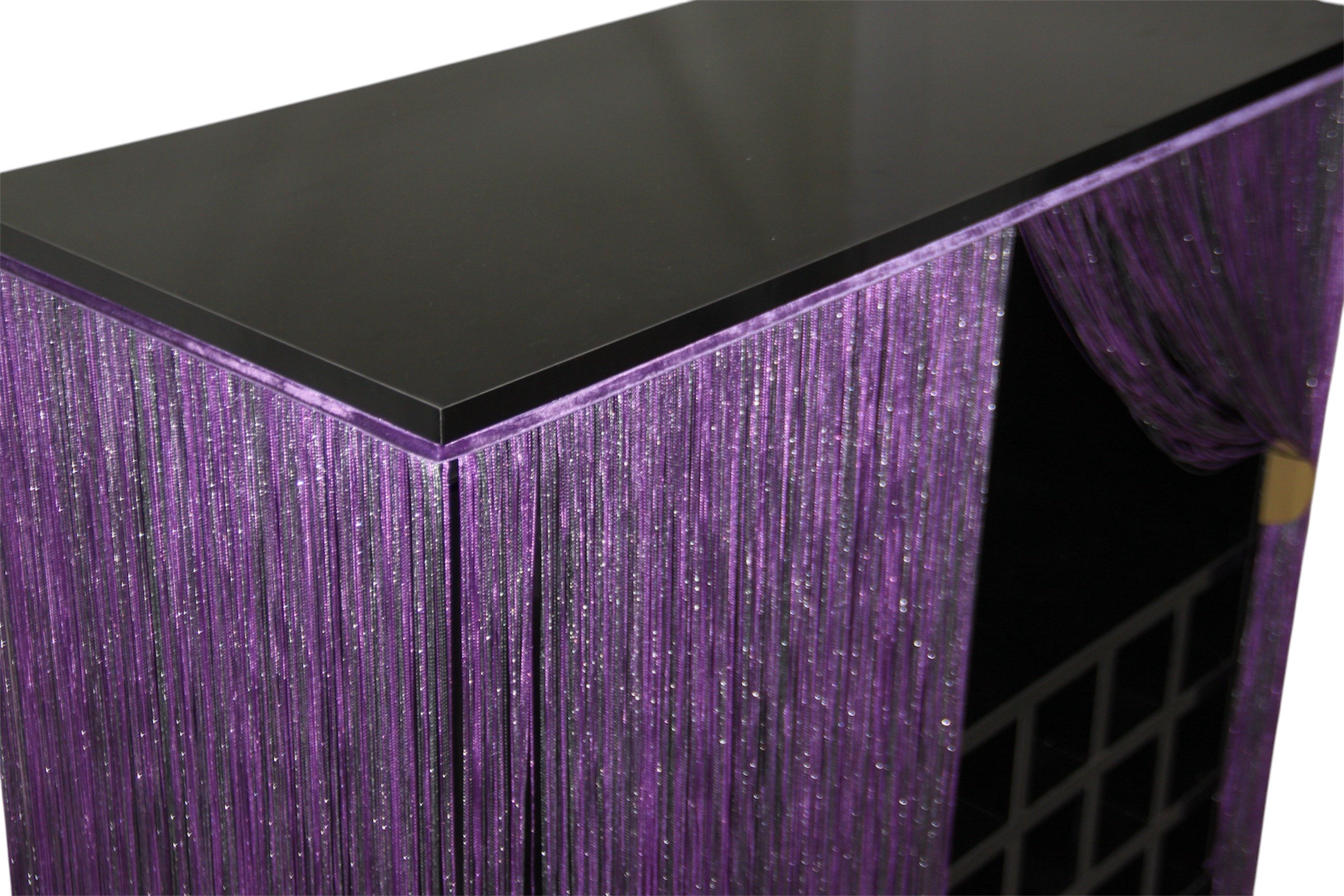 Wino, modern tasarımı ve zarif detaylarıyla öne çıkan şık bir büfedir. Parlak siyah yüzeyi ile sofistike bir görünüm sunarken, mor ip perdeleriyle iç bölmeleri gizleyerek estetik bir dokunuş sağlar. Özel tasarımlı rafları, şarap şişeleri, bardaklar ve diğer içecekler için geniş bir saklama alanı sunar. Bulunduğu ortama uyum sağlarken aynı zamanda farklı tasarımıyla dikkat çeken Wino, işlevselliği ve göz alıcı tasarımıyla yaşam alanlarınıza hem şıklık hem de düzen katmak için idealdir.
